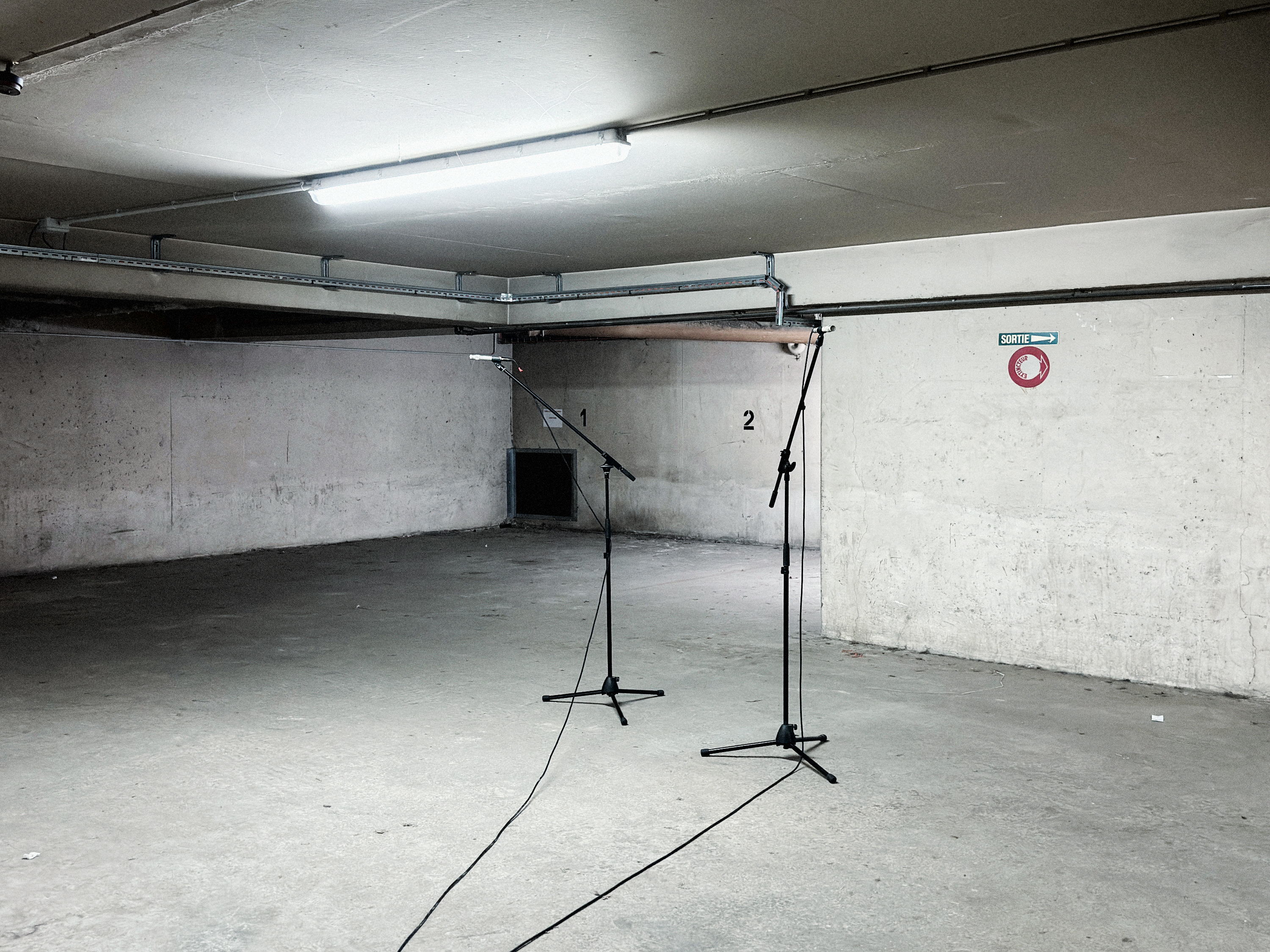 - L’artiste a utilisé la technique de réverbérations à convolutions via un dispositif d’enceintes et de micro. Il a d’abord sondé la résonance de chaque pièce puis choisi les espaces présentant une réverbération musicale intéressante.