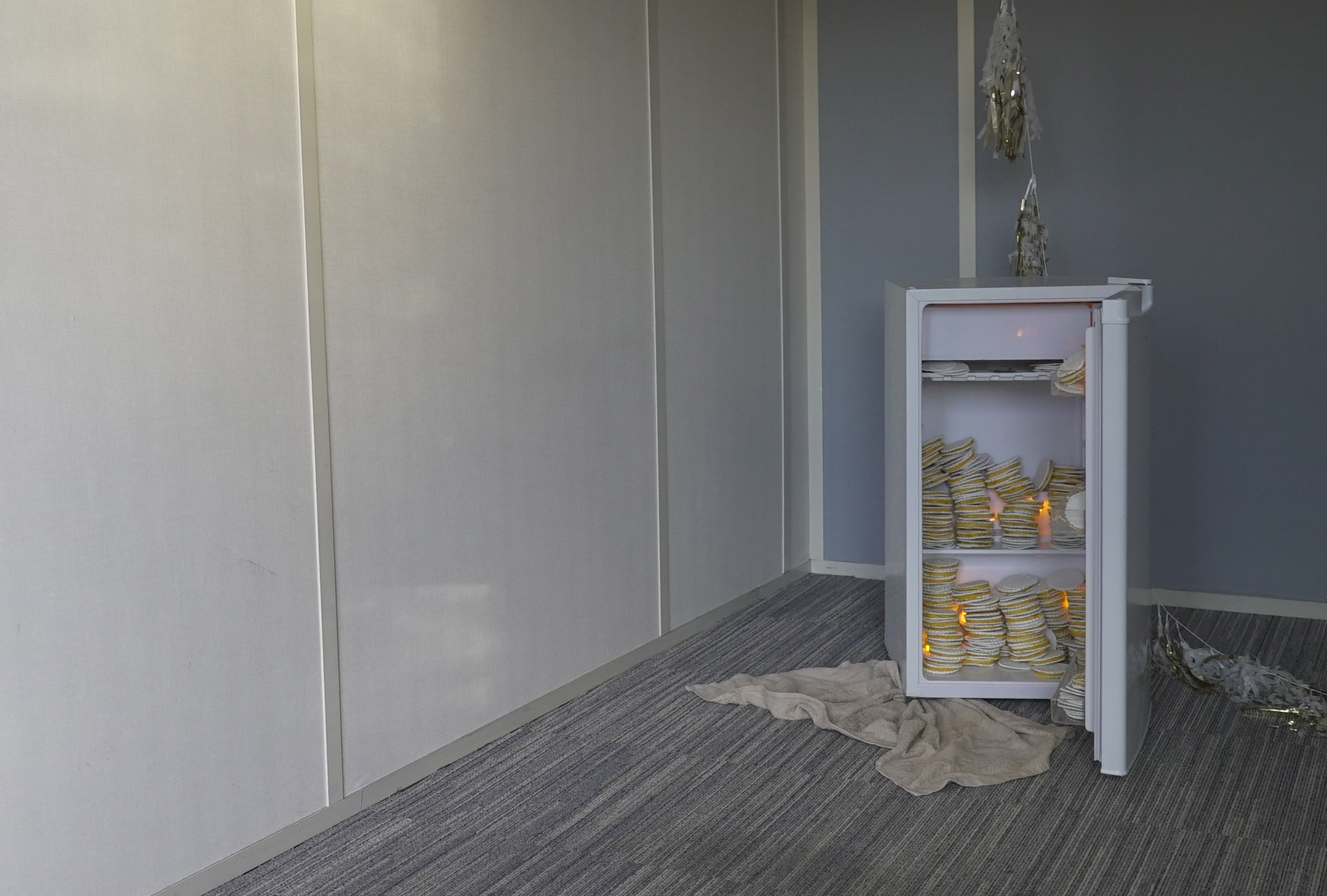 L’artiste investit trois pièces qui sont autant de facettes de ce récit de la précarité domestique. Dans 3KW, la pièce est vide car tout a été saisi par l’huissier à l’exception du strict nécessaire prévu par la loi –réfrigérateur, ampoule, radiateur limité à la quantité minimum d’énergie de 3KW. Dans la pièce du milieu autrefois dédiée à l’accompagnement social du RSI, on retrouve les extraits du texte Cry me a river. Une dernière salle accueille l’installation Nos gardiennes mortes. Les gardiennes sont des guêpes que l’artiste voit comme « les meufs qui s’entraident, qui gueulent, qui débarquent, qui accusent, qui vengent, mais qui sont finalement bouffées, tuées par les figues. Les figues sont formées naturellement par la mort d’une guêpe pendant la pollinisation de la fleur, la figue utilisant le pollen pour féconder la fleur de figuier ».